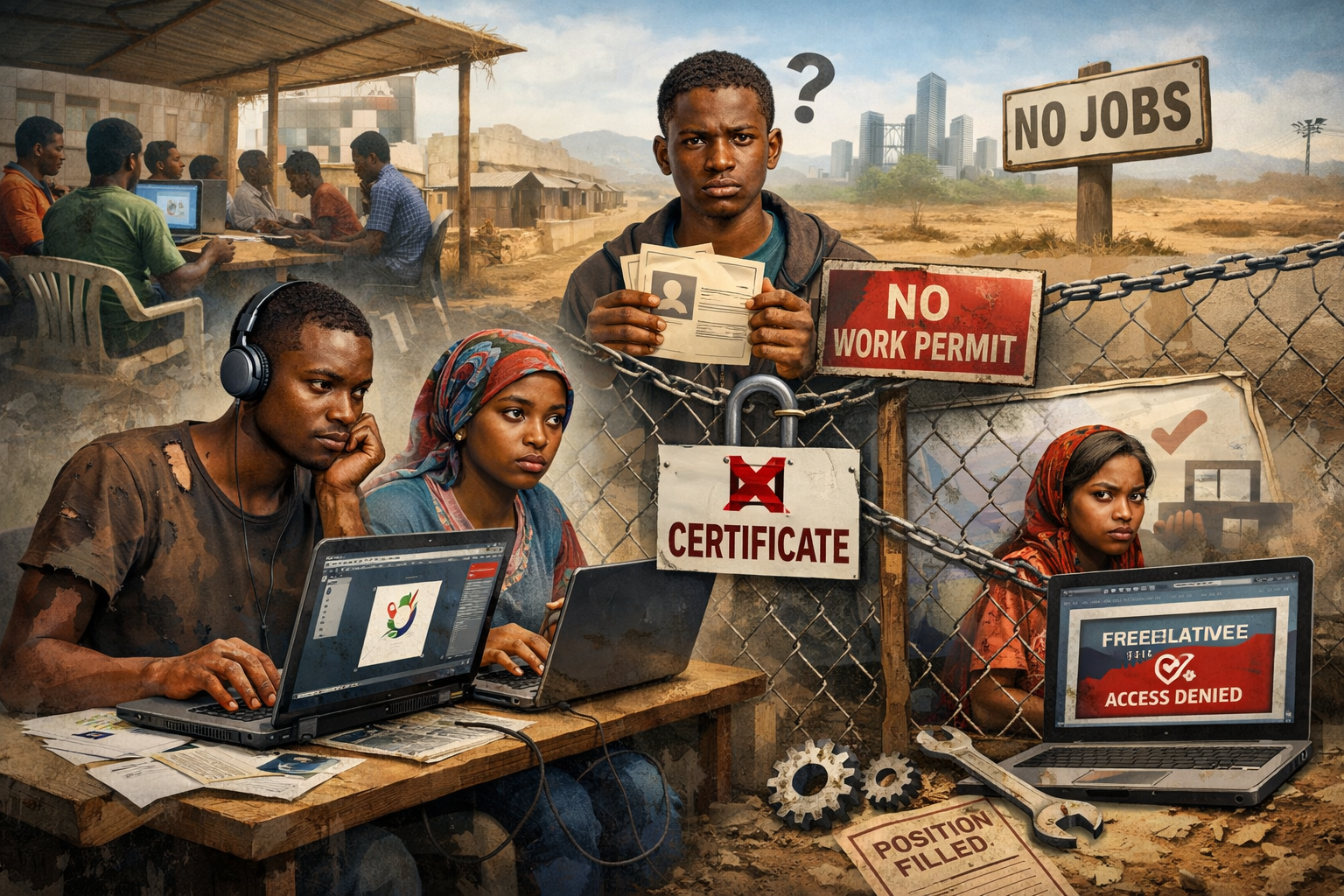 Employers and online platforms often require verifiable credentials, leaving skilled individuals struggling to translate knowledge into income. Documentation and work authorization barriers further constrain access to formal employment and digital freelance platforms.